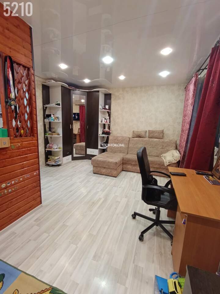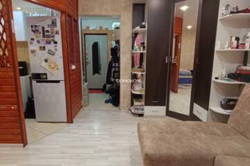 В квартире выполнен качественный ремонт. Установлены окна ПВХ, натяжной потолок по всей квартире, на полу в комнате уложен ламинат, на кухне и в коридоре кафель. Санузел совмещён, достаточно места, чтобы установить стиральную машину. Лоджия застеклена, утеплена. Слышимость нулевая!